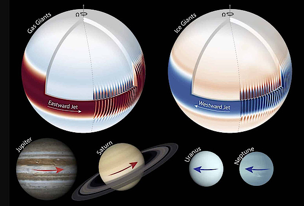 Переход между состояниями при этом зависит от глубины конвективного слоя: более глубокие оболочки характерны для Юпитера и Сатурна, мелкие — для Урана и Нептуна. Хотя в промежуточном диапазоне возможны оба варианта, исход зависит от случайных флуктуаций в начальной турбулентности. Моделирование также помогло выявить наличие экваториальных волн, которые движутся в противоположных направлениях в зависимости от типа вращения, что, по мнению планетологов, указывает на универсальный механизм этих процессов.