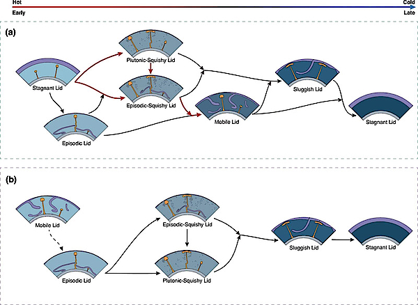 В новом исследовании международная группа под руководством ученых из Департамента наук о Земле и планетах при Гонконгском университете (Китай) с помощью моделирования выявила шесть режимов тектоники: мобильная (как у Земли), малоподвижная, эпизодическая, плутоническая-малоподвижная, застывшая (как у Марса), а также эпизодически-малоподвижная. Первые пять были описаны в науке ранее.