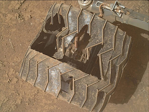 Снимки, полученные на этой недели, наглядно продемонстрировали, какой урон поверхность Марса нанесла колесам аппарата. Однако, несмотря на это, упорный марсоход продолжает выполнять свою миссию.