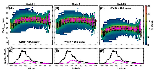 При этом вне зависимости от модели, полученные оценки не зависят от конкретного места измерений — иными словами, они остаются постоянными почти для всей Венеры от 60 градусов южной до 70 градусов северной широты. Южнее и севернее этой границы наблюдается небольшое понижение среднего значения примерно на 2 ppmv. Как замечают авторы статьи, возможно, здесь сказываются погрешности измерений — более высокий уровень шума по отношению к полезному сигналу, хотя не исключена и физическая причина этого понижения, связанная с глобальной циркуляцией венерианской атмосферы.