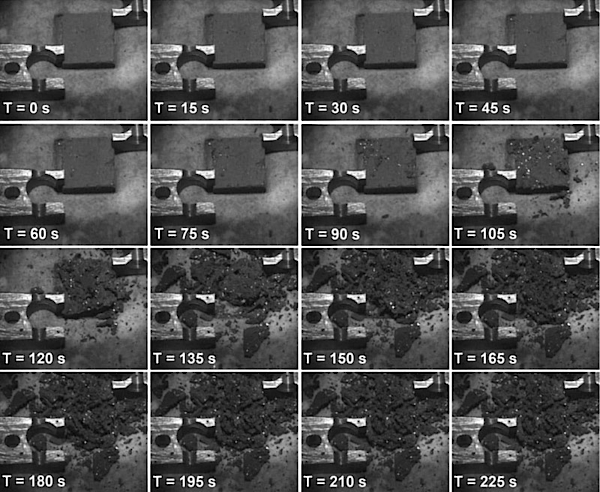 Аналог вещества Оргея поместили в вакуумную камеру с мощной лампой и линзами, которые имитируют солнечное излучение. Таким образом в лаборатории воссоздали условия пребывания астероидов на расстояниях примерно от 10 до 37 миллионов километров от светила. В результате такого воздействия через несколько минут происходило взрывное разрушение материала.