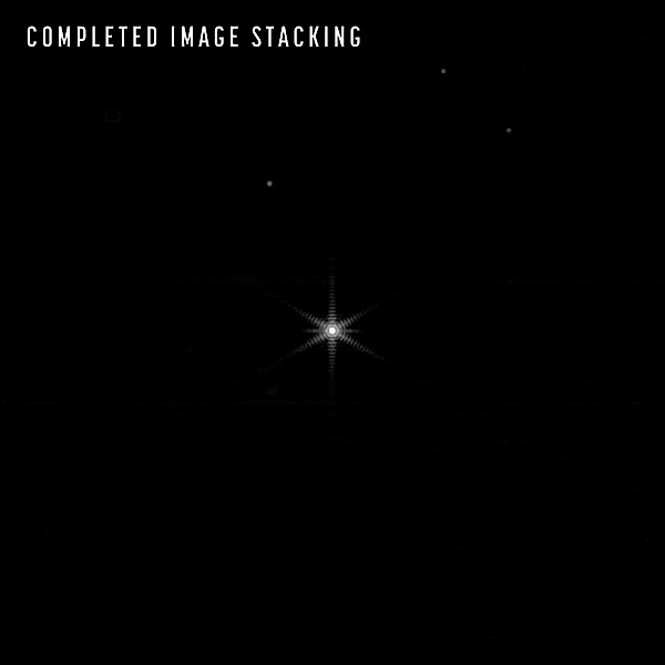 На третьем этапе работ сфокусированные изображения звезды складывались друг над другом — это достигалось путем подстройки зеркал так, чтобы все отраженные пучки света перекрывались, а все отраженные фотоны попадали в одно и то же место на датчике инфракрасного инструмента NIRCam. В итоге все 18 изображений звезды превратились в одно.
