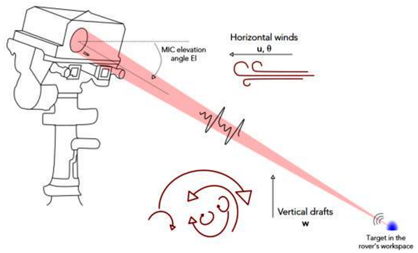 Микрофон прибора SuperCam предназначен, в первую очередь, для регистрации перепадов давления, связанных с лазерно-искровой эмиссионной спектроскопией, из-за которой возникает акустическая волна при абляции горных пород инфракрасным лазером. Однако он также регистрирует шум окружающей среды, порождаемый атмосферной турбулентностью, ветрами и конвективными вихрями. Благодаря прибору можно измерить скорость звука в марсианской атмосфере путем определения времени распространения создаваемого абляцией породы высокочастотного (более двух килогерц) акустического сигнала от цели до микрофона. Обычно сеанс спектрометрических исследований состоит из нескольких серий по 30-150 лазерных выстрелов по выбранному фрагменту породы. Благодаря точной синхронизации между лазером и микрофоном время распространения звуковой волны можно определить с точностью ±10 микросекунд, а, в целом, скорость звука может быть определена для каждого лазерного выстрела с точностью до полпроцента.