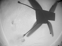 В январе этого года дрон пережил свою первую крупную пылевую бурю, совершив после нее девятнадцатый по счету полет. Однако в ходе анализа состояния аппарат были выявлены две проблемы: загрязнение пылью объектива навигационной камеры, особенно по периферии поля зрения, и узлов автомата перекоса. Тем не менее, найти решения проблем удалось. Дрон получил обновления программного обеспечения камеры, которое позволяет игнорировать определенные области снимков и не использовать их для поддержания ориентации во время полета изображения. Что же касается винтов дрона, то инженеры провели пробную процедуру покачивания сервоприводов, что позволило вытрясти пыль и песок из узлов автомата перекоса.