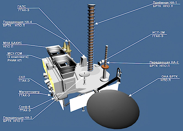 МСУ-ГС (многозональное сканирующее устройство) — не «фотоаппарат», а «сканер», который с помощью подвижного зеркала сканирует земной диск, формируя целое изображение примерно за восемь минут. В нем две независимых части — для съемки в видимом диапазоне (от 500 до 900 нанометров) и в инфракрасном (от 3,5 до 12 микрон). Второй прибор, гелиогеофизический аппаратурный комплекс ГГАК-ВЭ содержит несколько сенсоров, предназначенных для измерения магнитных полей, потока космических частиц — солнечных и галактических, фиксации солнечных рентгеновских вспышек.